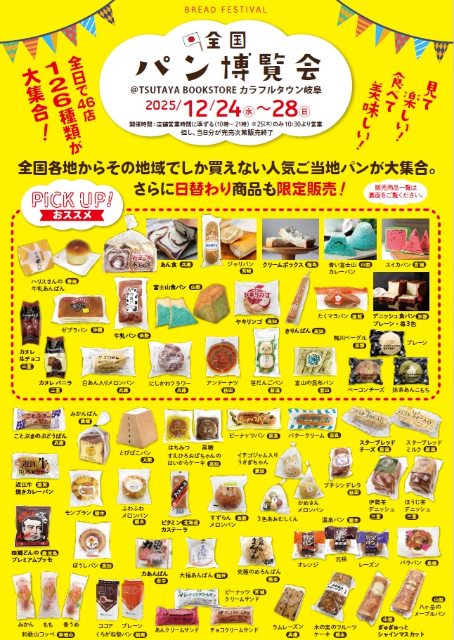 「全国パン博覧会」がTSUTAYA BOOKSTOREカラフルタウン岐阜で12月24日~28日に開催【岐阜県岐阜市】